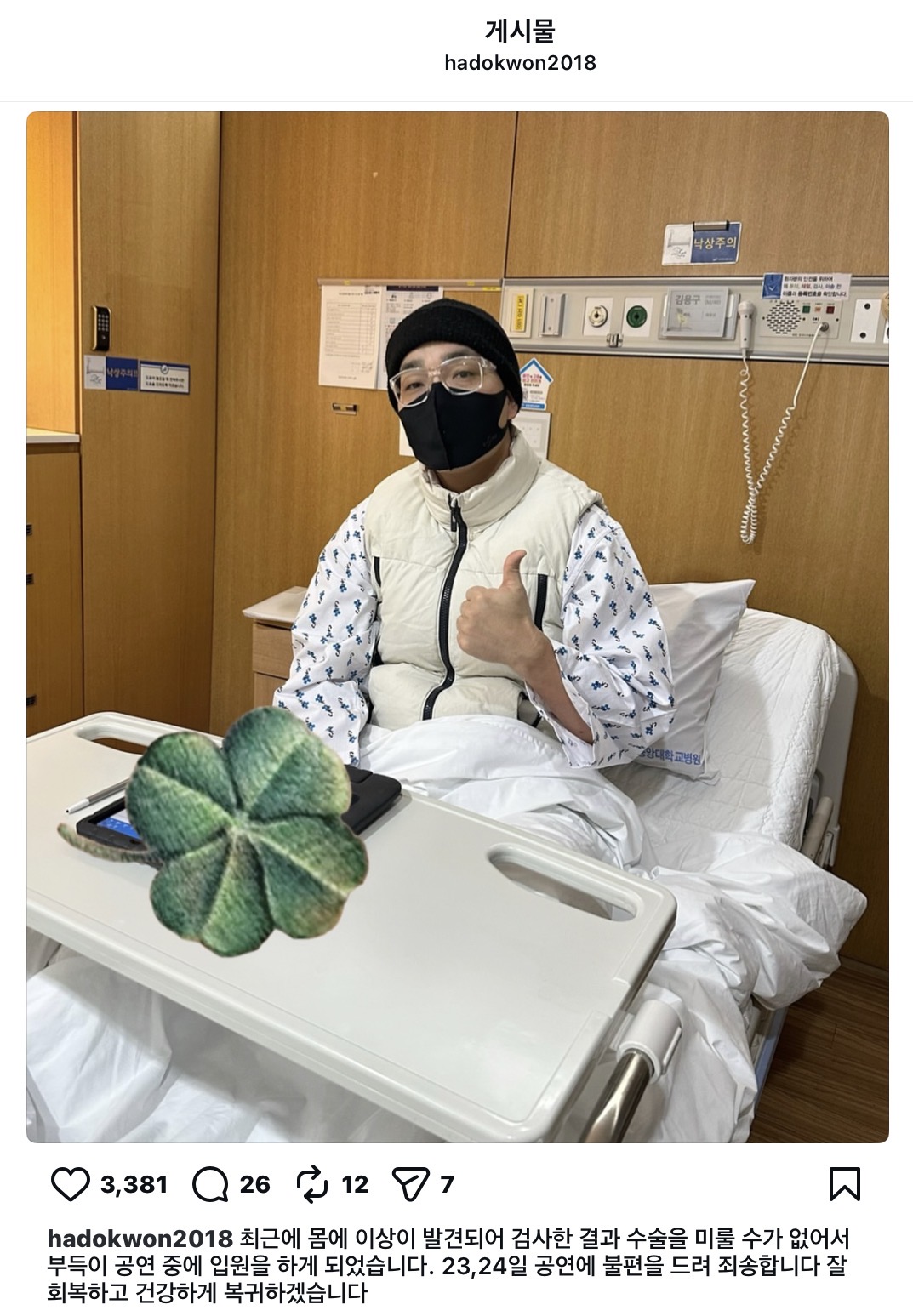 직접 밝힌 입장과 병원 사진, 복귀 시점까지 현재 상황을 정리했다.